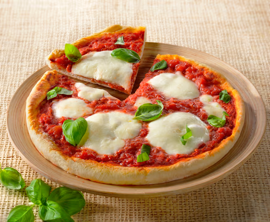 Pomodoro, mozzarella, prosciutto, funghi, carciofi, olive
